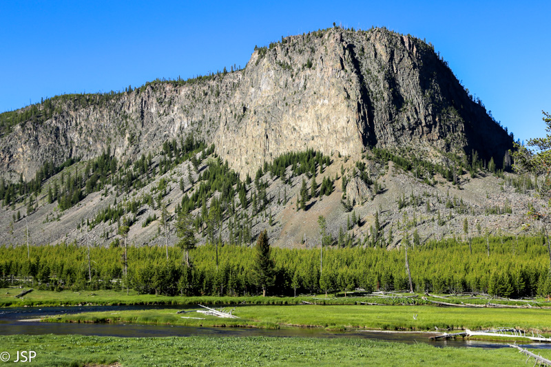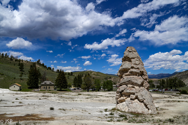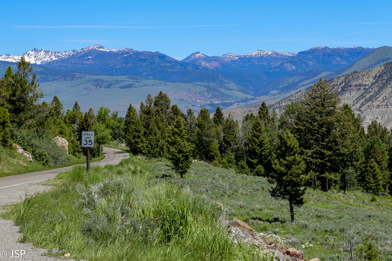 Nebeturim laiko eiti toliau – ir taip jau Norris Basin užtrukom žymiai ilgiau nei planavom – taigi grįžtam į parkingą ir važiuojam toliau, link Mammoth Hot Springs. Apylinkės labai vaizdingos, bet jau niekur nebestojame, nes laikas spaudžia, juk dar tiek daug norisi pamatyti!