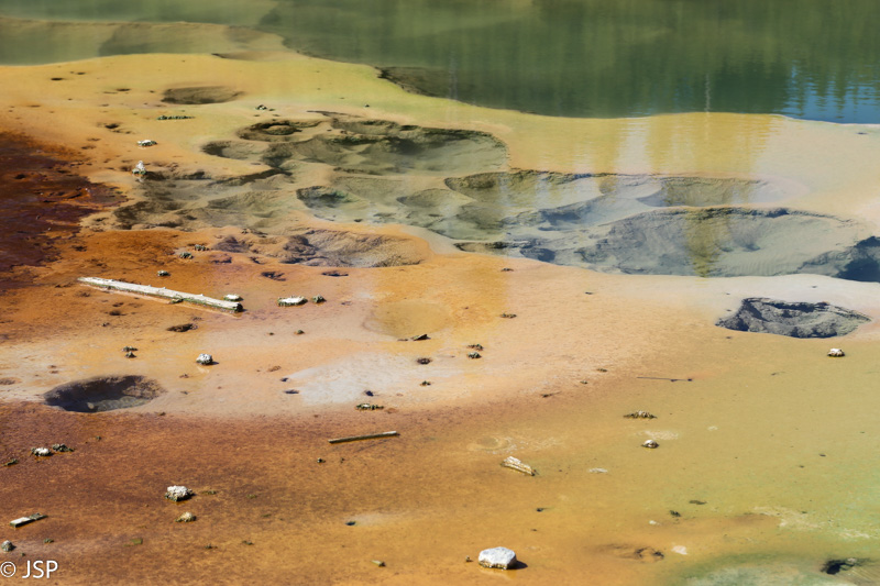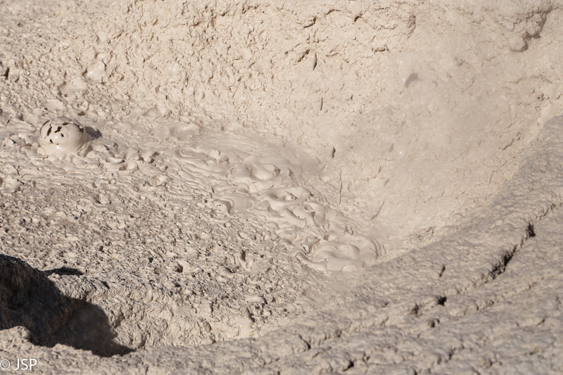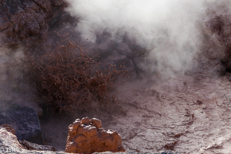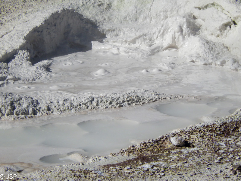 O čia štai rudo dumblo „puodai“ – Mudpots. Labai smagu stebėti tą šnypščiantį ir burbuliuojantį karšto purvo gamybos procesą.