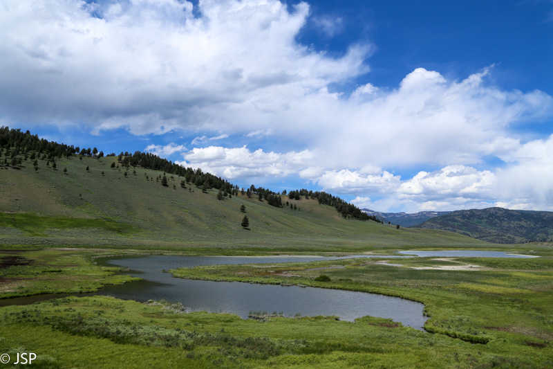 Pirmieji prieš mūsų akis atsivėrę Yellowstone peizažai man primena Suomiją ir Kareliją, nors ir nesu ten buvusi, tik nuotraukas mačiusi – bekraščiai žali plotai, eglynai, pievos, šalčiu spindintis upių vanduo. Šiaurė. Daug erdvės, laisvės ir ramybės – toks pirmasis įspūdis.