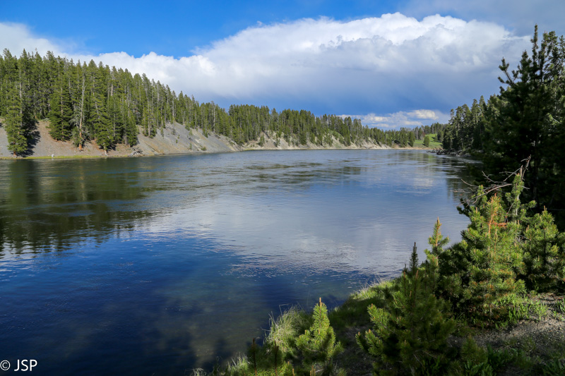 Galiausiai elniai pasislepia pakrantės medžiuose, žmonės pradeda skirstytis. Laikas judėti ir mums. Ši netikėta gamtos dovana mus taip užbūrė, kad jau nebenorime nei ežero iš arčiau apžiūrėti, nei West Thumb geizerių – gražiau, nei ką tik matėme, jau nebus, nenorime gadinti šio tobulo įspūdžio. Taigi sukame į pietus ir važiuojame prie parko ribos. Pakeliui – dar vienas gražuolis ežeras, Lewis Lake: