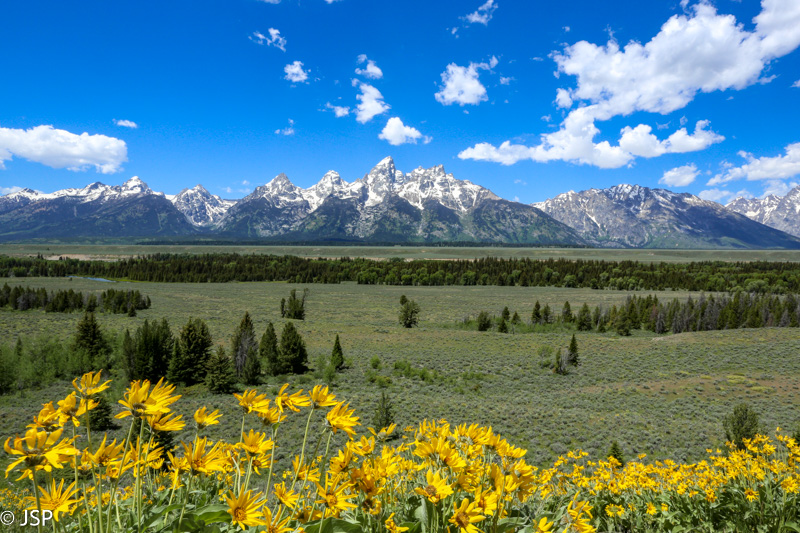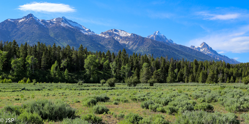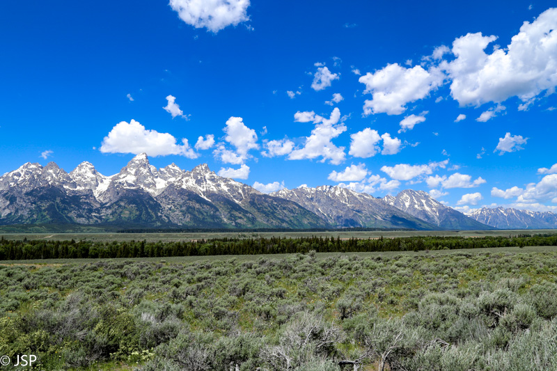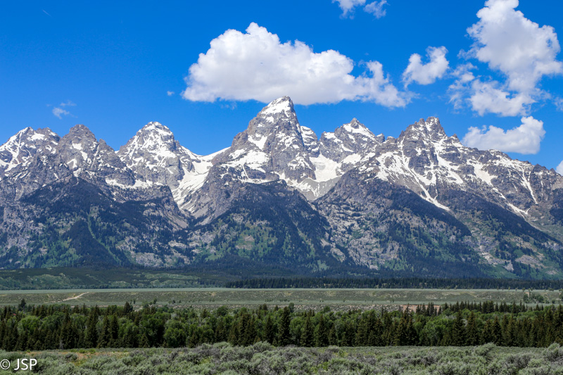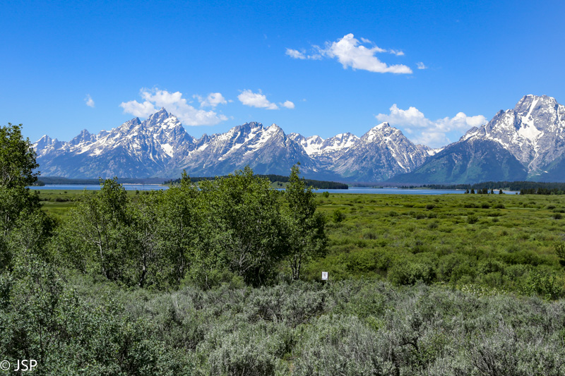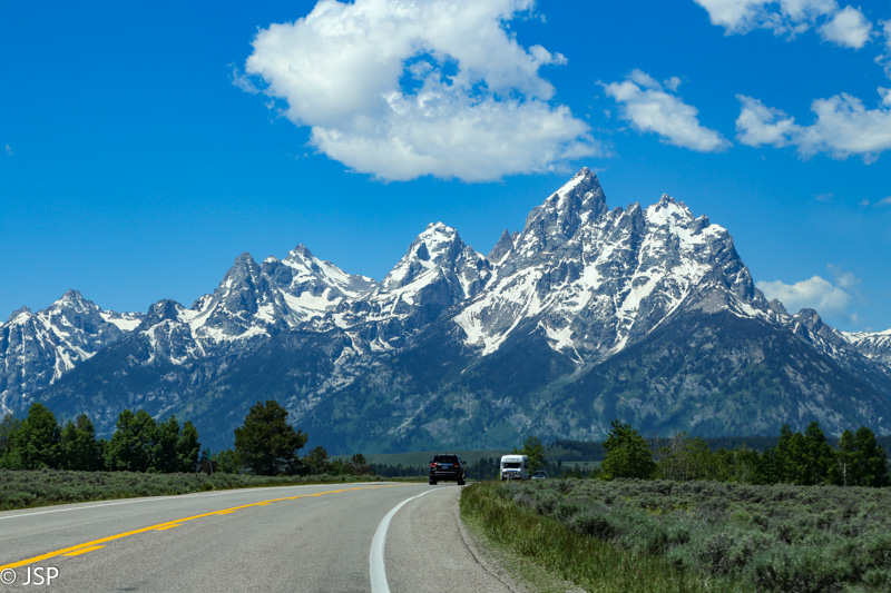 Važiuojam toliau pietų kryptimi, ir visą kelią mus lydi Teton kalnų grandinė. Stojame keliose apžvalgos aikštelėse (Teton Point Turnout, Glacier View Turnout ir kt.), nors vaizdai iš visur panašūs, bet vis iš naujo norisi jais gėrėtis. Nežinau, koks gamtovaizdis atsiveria nuo pagrindinio per parką vedančio kelio, bet vaizdai nuo 89-ojo kelio tikrai nuostabūs.