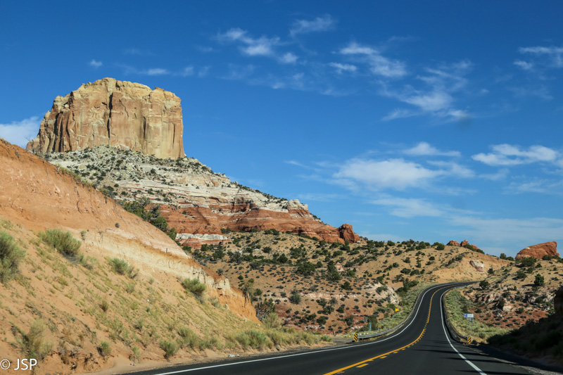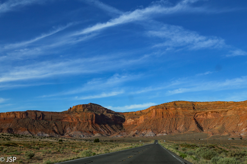Po pusvalandžio jau kertam Arizonos valstijos sieną. Pakliūvam ne tik į kitą valstiją, bet ir į kitą laiko juostą. Arizona nepaiso vasaros laiko (išskyrus Navajo Nation teritoriją), taigi čia dar tik pusė septynių. Pro kanjonus ir dykumas važiuojam link Page.