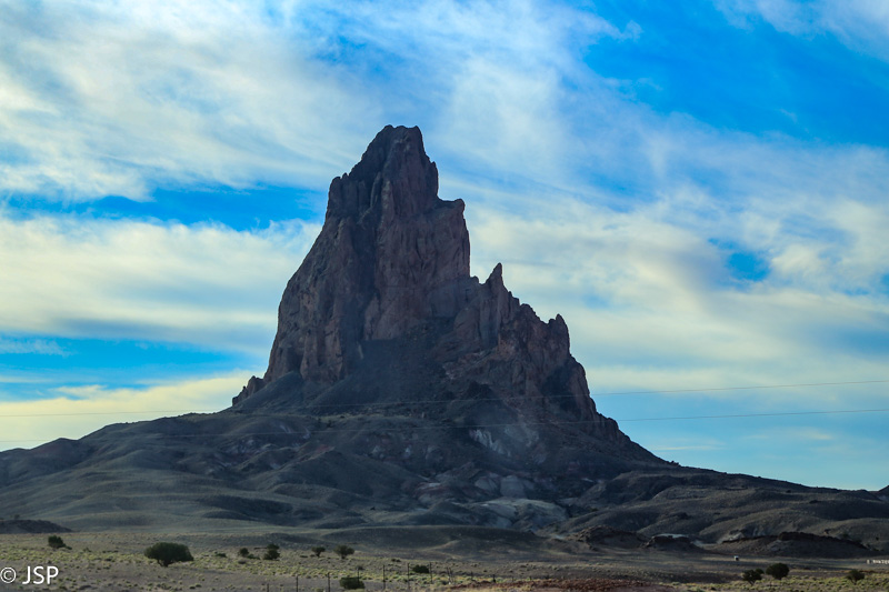 Ta trikampė uola tolumoje vadinama „Skęstančiu laivu“ (Sinking Ship). Banguojančios kalvos aplinkui išties kažkiek primena jūrą.