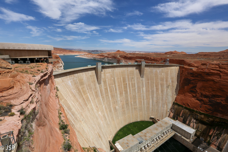 Vėl pravažiuojam Page ir stabtelim prie Glen Canyon Dam – didžiulės užtvankos, užtvėrusios Kolorado upę ir suformavusios Lake Powell – antrą pagal dydį dirbtinį vandens rezervuarą JAV. Šalia yra informacinis centras ir suvenyrų parduotuvė. Kiek pavažiavę dar sustojam apžvalgos aikštelėje šalia Lake Powell. Įsivaizduoju, kaip būtų smagu paplaukioti po šį ežerą laiveliu, o dar geriau – pasivaikščioti po jo pakrantes.