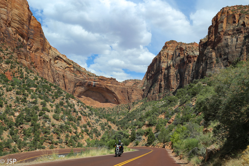 Pravažiuojam 1.1 mylios ilgio Zion-Mount Carmel tunelį (vaizdai pro uoloje iškirstas nišas – labai daug žadantys) ir vėl išlendame į dienos šviesą kitoje jo pusėje, vis dar Upper East Canyon. Vaizdai svaigina – jau žinau, kad Zion‘e man tikrai patiks!