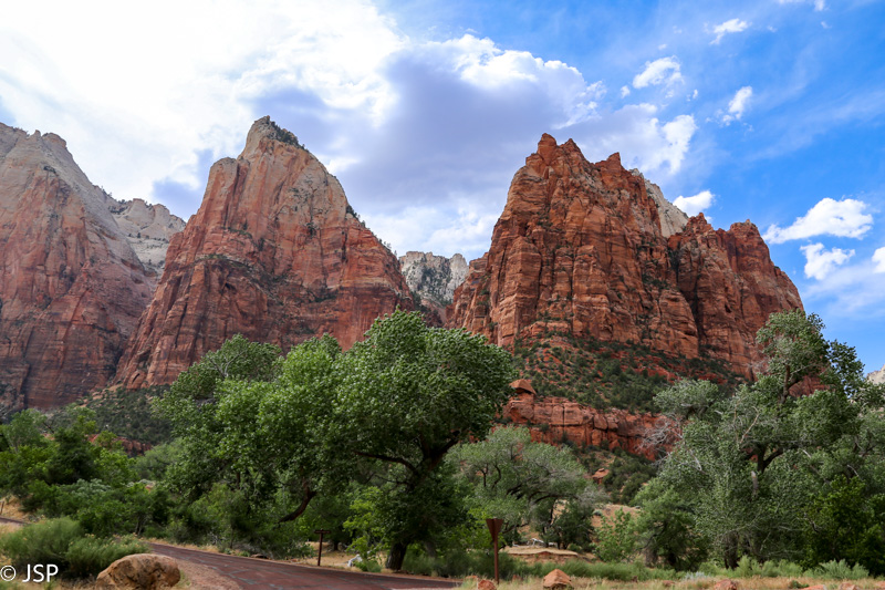 Kryžkelėje sukame į kairę ir Zion kanjonu važiuojam link parko pietinių vartų (South Entrance) – iki jų vos keli kilometrai.