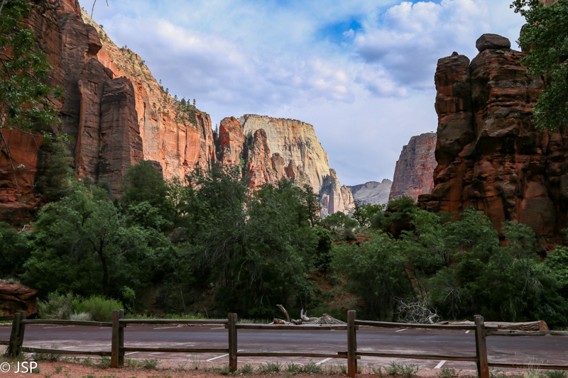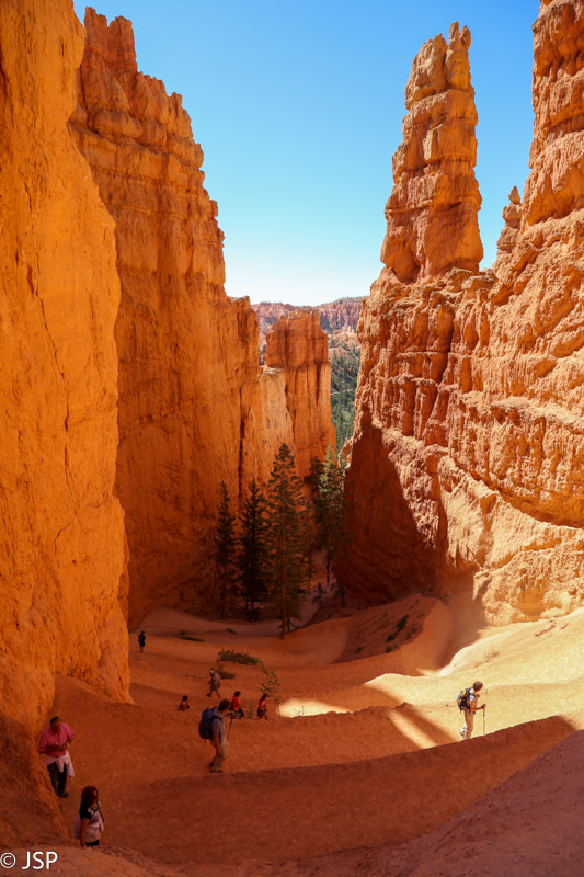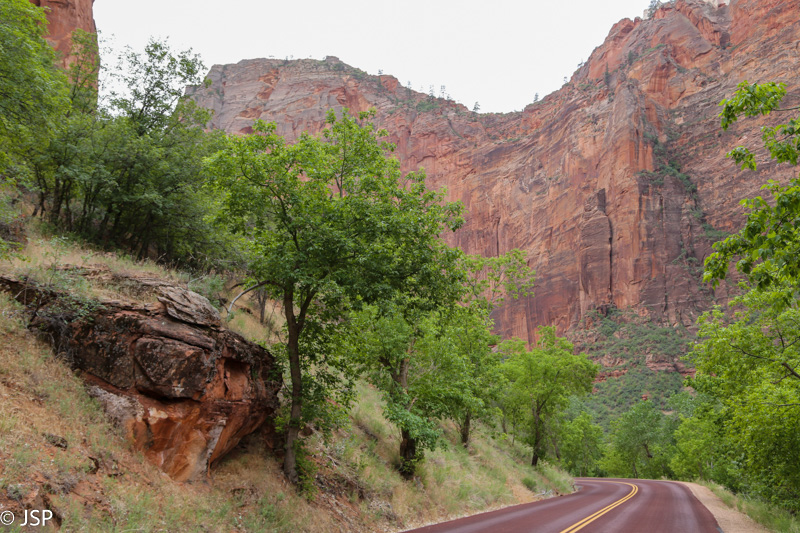 Paupio takas po kurio laiko pasibaigia, ir paskutinius kelis šimtus metrų jau tenka eiti keliu. Bet šiuo keliu važinėja tik parko autobusai, taigi eiti saugu, nereikia kas minutę dairytis, ar neatvažiuoja kas iš paskos. Iš tiesų labai geras sprendimas – neįleisti į kanjoną automobilių.