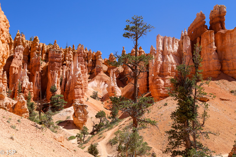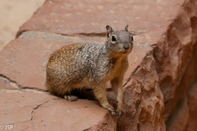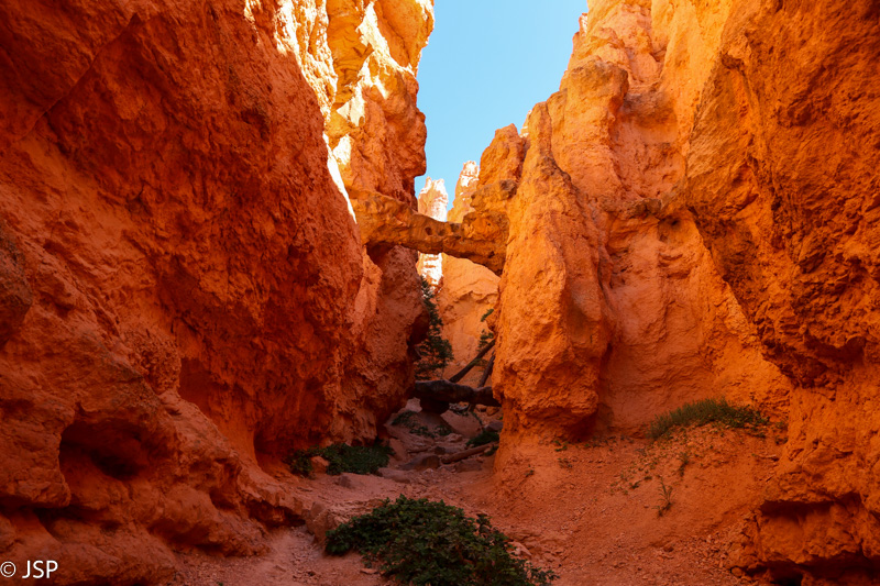 Čia apačioje – visai kitas pasaulis nei ant kanjono krašto: mažiau kvapą gniaužiančios erdvės, daugiau intymumo, galima iš arčiau apžiūrėti gražiąsias uolas. Tik jau darosi karšta – kanjono dugne saulė kepina kaip reikiant. Netrukus prieinam kryžkelę – takas link Queen‘s Garden suka į kairę, bet mes dar šiek tiek paeiname į kitą pusę, Navajo Loop trasa, tiesiog pasižiūrėti, kas ten, už posūkio. Vėl grįžę prie kryžkelės sukame link Queen‘s Garden. Aplink – skurdus dirvožemis, reti medžiai, fantastiškų formų uolos ir smalsios voveraitės.