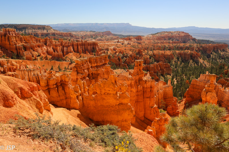 Ir vėl amfiteatras. Tolumoje matosi Bryce Point.