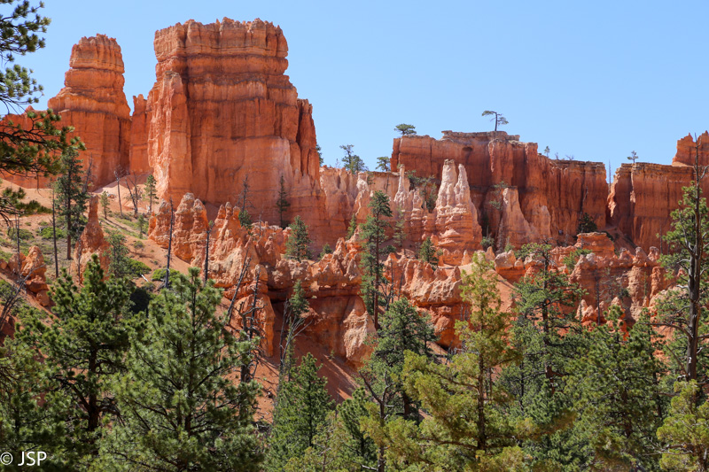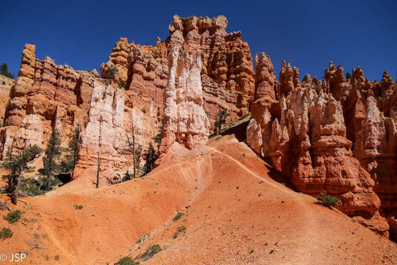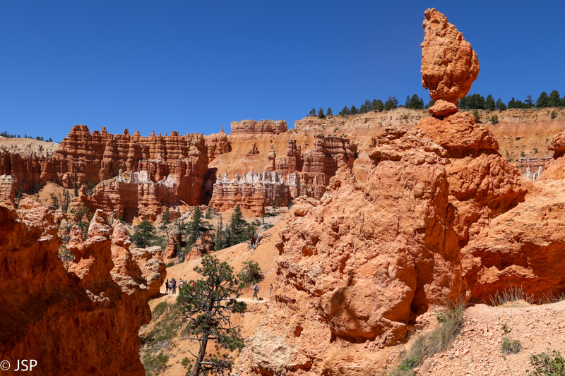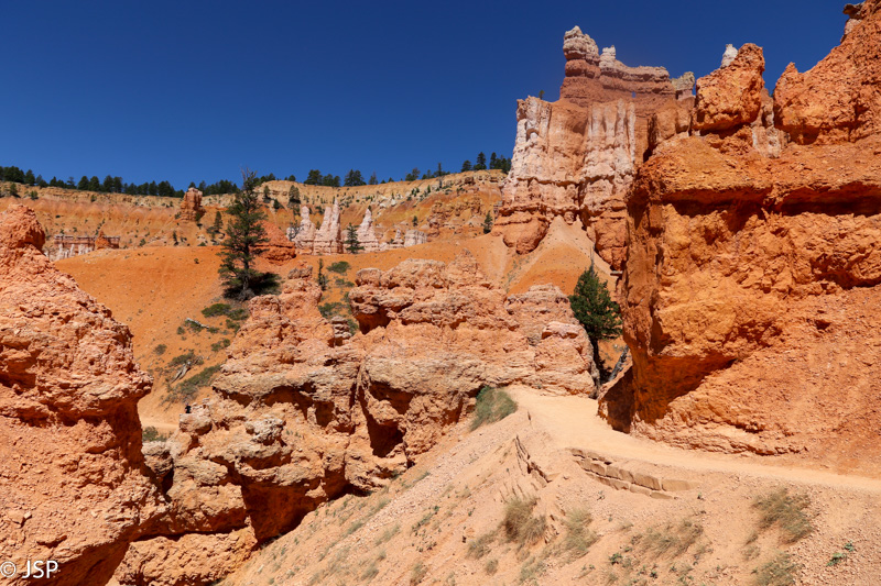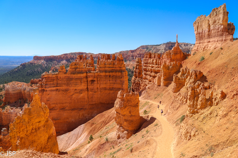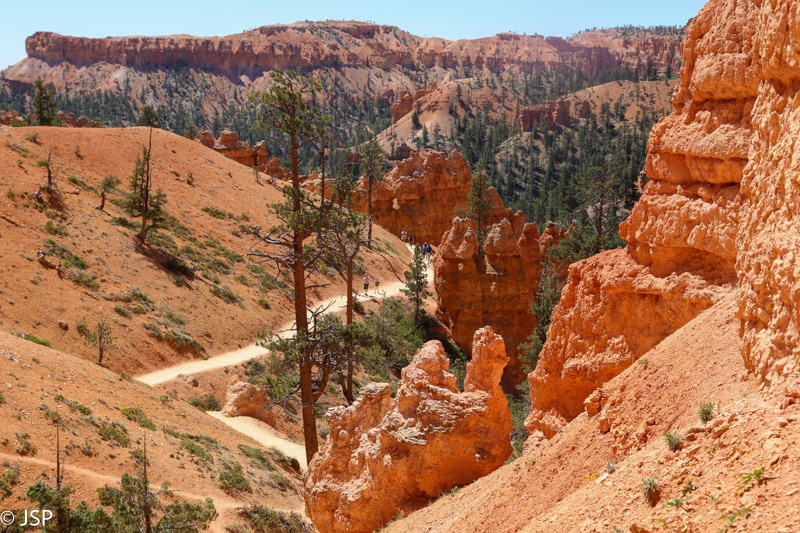 Nuo Queen‘s Garden vėl grįžtam į pagrindinį taką ir žygiuojam link Sunrise Point. Takas pamažu kyla aukštyn, aplink taką spiečiasi hoodoos – kas keli žingsniai jie vis kitokie.