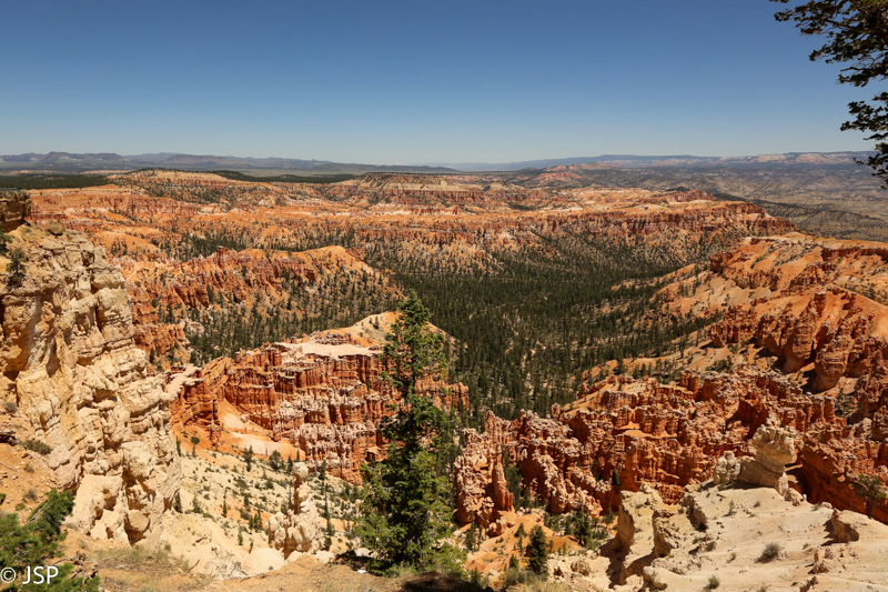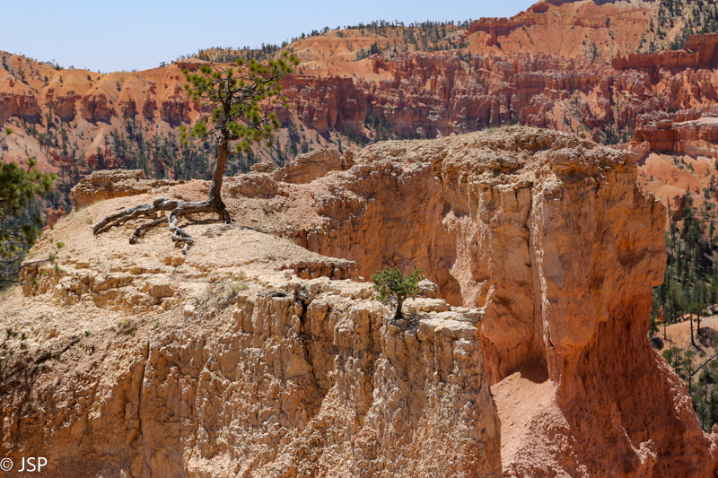 Kitas sustojimas – Bryce Point. Čia yra kelios apžvalgos aikštelės, jas visas ir apeiname. Kanjono vaizdai čia dar erdvesni nei dairantis nuo Sunset ar Sunrise. (Abi šios apžvalgos aikštelės – tolimojoje “amfiteatro” pusėje.)