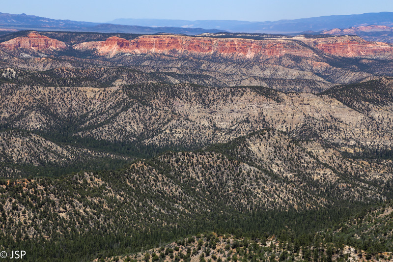 Visai netoli Bryce yra dar vienas gamtos paminklas – Dixie National Forest. Net nežinojom (nes nesidomėjom), kad teks per jį važiuoti, bet pasirodo, kelias į Bryce Canyon veda per Raudonąjį kanjoną (Red Canyon), priklausantį Dixie National Forest. Rusvai raudonos uolos palei kelią – labai įspūdingos.